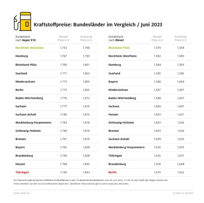 ADAC: Nordrhein-Westfalen günstigstes Bundesland bei Benzin – Regionale Preisunterschiede beim Tanken werden kleiner – Thüringen und Berlin teuerste Bundesländer