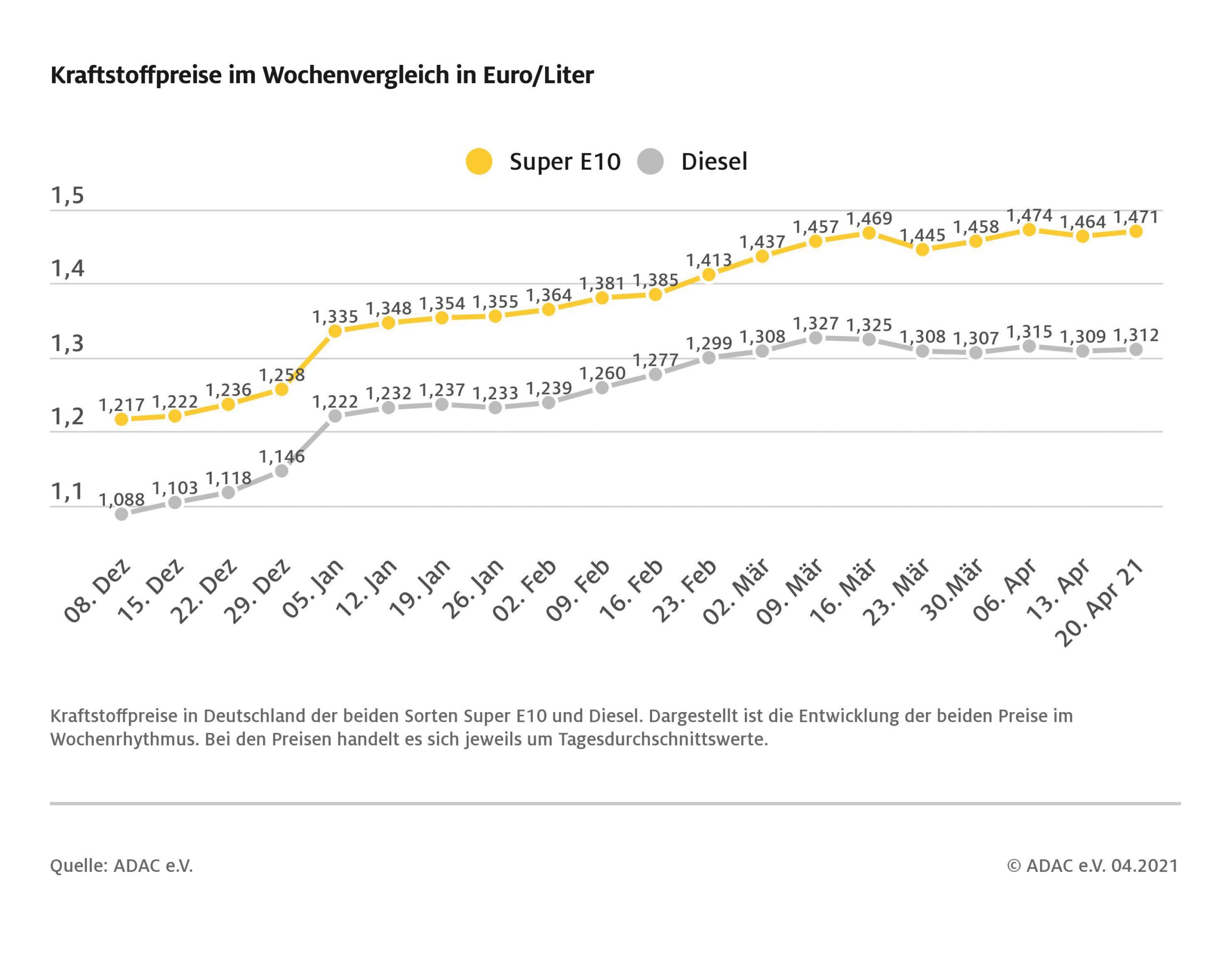 München (ots) – Tanken hat sich in Deutschland leicht verteuert. Dies zeigt die aktuelle ADAC Auswertung der Kraftstoffpreise. Danach kostet ein Liter Super E10 im bundesweiten Mittel 1,471 Euro, das ist ein Anstieg von 0,7 Cent gegenüber der vergangenen Woche. Der Preis für Diesel-Kraftstoff liegt derzeit bei 1,312 Euro und damit um 0,3 Cent über dem Wert der Vorwoche.