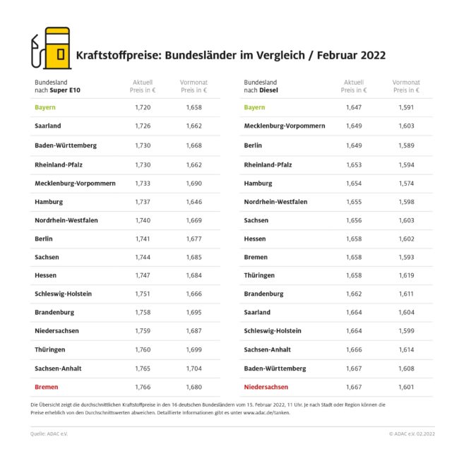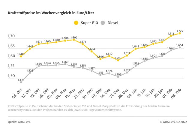 München (ots) – Die Kraftstoffpreise eilen von Rekord zu Rekord. Wie die aktuelle ADAC Auswertung der Kraftstoffpreise in Deutschland zeigt, kletterte der Preis für Super E10 binnen Wochenfrist im bundesweiten Mittel um zwei Cent auf 1,745 Euro – ein neues Allzeithoch. Auch für Diesel müssen die Autofahrer so viel bezahlen wie nie zuvor: Ein Liter…
