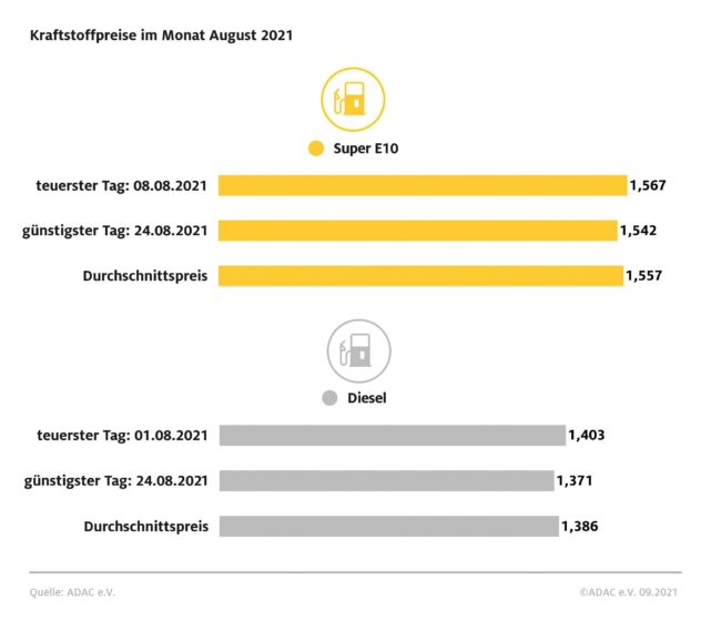 München (ots) – Tanken war für die Fahrer von Benzin-Pkw im August so teuer wie in keinem anderen Monat des laufenden Jahres. Dies zeigt die aktuelle ADAC Auswertung der Kraftstoffpreise in Deutschland. Danach kostete ein Liter Super E10 im Monatsmittel 1,557 Euro und damit ein Cent mehr als im Juli. Etwas günstiger konnten hingegen Diesel-Fahrer tanken:…
