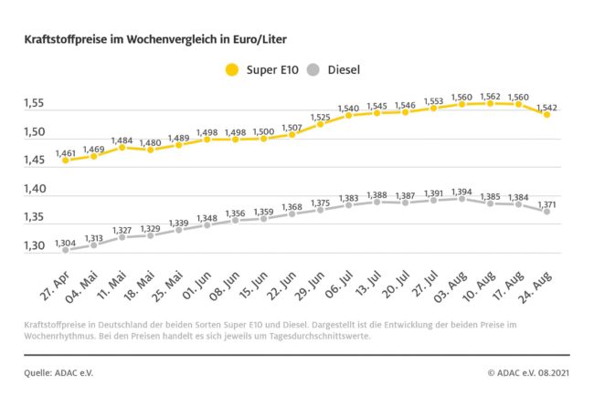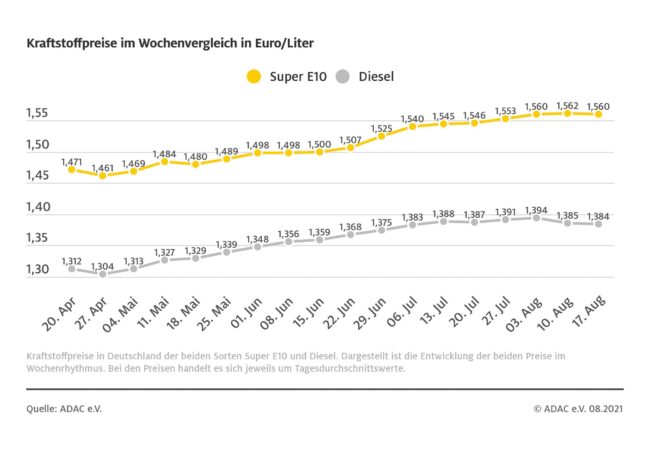 Benzinpreis: August teuerster Monat des Jahres – ADAC: überhöhtes Preisniveau aufgrund des Reiseverkehrs – Beide Sorten verteuern sich im Vergleich zur Vorwoche um 1,6 Cent