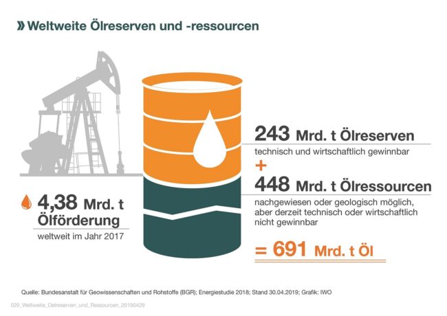 243 Milliarden Tonnen – so hoch sind derzeit die Erdölreserven weltweit. Die Versorgung mit Erdöl ist also sicher – zumindest werden die Vorkommen deutlich länger halten als wir sie voraussichtlich benötigen. Das belegen aktuelle Zahlen aus der „Energiestudie 2018“ der Bundesanstalt für Geowissenschaften und Rohstoffe (BGR). Die 243 Milliarden Tonnen sind die mit heutiger Technologie…