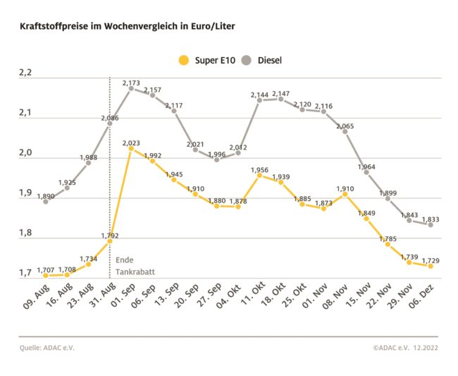 ADAC: Spritpreise geben erneut nach – Preisdifferenz zwischen Benzin und Diesel vergrößert sich