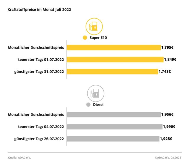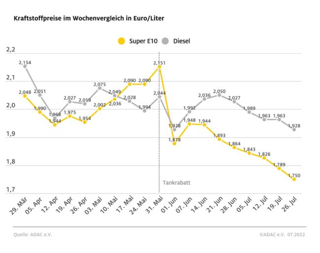 ADAC: Tanken im Juli deutlich günstiger – Benzinpreis sinkt im Monatsverlauf um gut zehn Cent – Preisrückgang aufgrund niedrigerer Rohölnotierungen