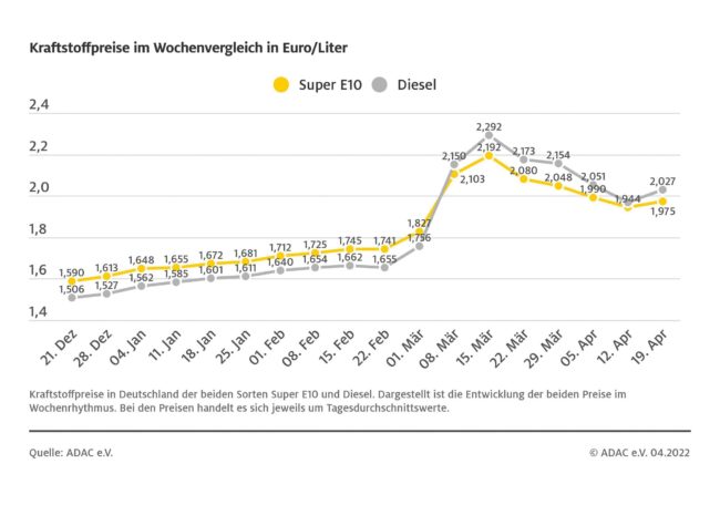 München (ots) – Die Fahrt zur Tankstelle ist binnen einer Woche wieder deutlich teurer geworden. Der Preis für einen Liter Super E10 ist im Vergleich zur Vorwoche um 4,8 Cent gestiegen und liegt aktuell im bundesweiten Mittel bei 2,002 Euro. Dies zeigt die aktuelle ADAC Auswertung der Kraftstoffpreise in Deutschland. Seit Anfang April bis Anfang…
