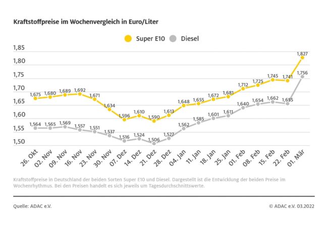 Der anhaltende Krieg Putins gegen die Ukraine macht ein Embargo gegen russische Energielieferungen immer wahrscheinlicher. Die Ölpreise an den internationalen Börsen schießen damit zum Wochenbeginn erneut in die Höhe. Sie ziehen die Heizölpreise im Inland mit nach oben. Heizöl kostet damit im bundesweiten Durchschnitt so viel wie noch nie zuvor. Allein im Vergleich zum…
