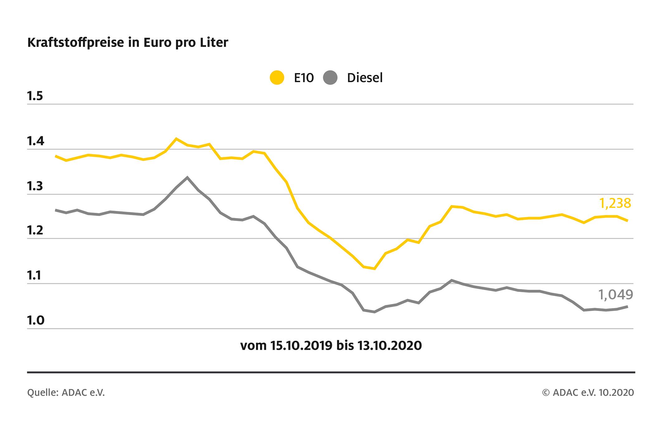 In die entgegengesetzte Richtung hat sich der Dieselpreis entwickelt. So kostet ein Liter Diesel zurzeit im Mittel 1,049 Euro, das ist ein Anstieg von 0,7 Cent gegenüber der Vorwoche. Die leichte Verteuerung bei Diesel ist laut ADAC durch die etwas stärkere Heizölnachfrage bedingt, die regelmäßig im Herbst einsetzt. Die Preisdifferenz zwischen beiden Kraftstoffsorten wird mit der aktuellen Entwicklung spürbar geringer. Sie beträgt derzeit 18,9 Cent je Liter, während sie vor einer Woche noch bei 20,6 Cent lag.
